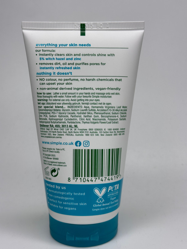شوینده صورت Purifying سیمپل Simple سری Daily Skin Detox مناسب پوست چرب و مستعد جوش