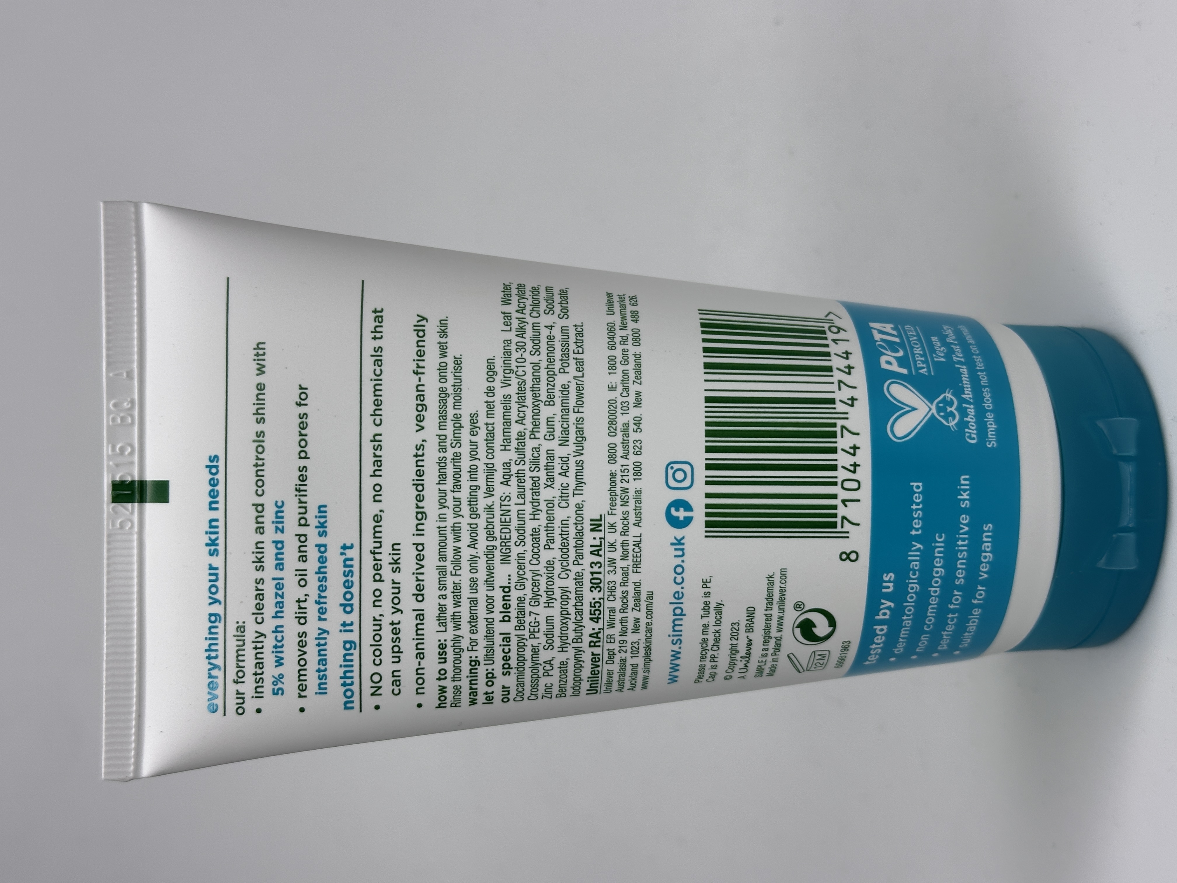 شوینده صورت Purifying سیمپل Simple سری Daily Skin Detox مناسب پوست چرب و مستعد جوش